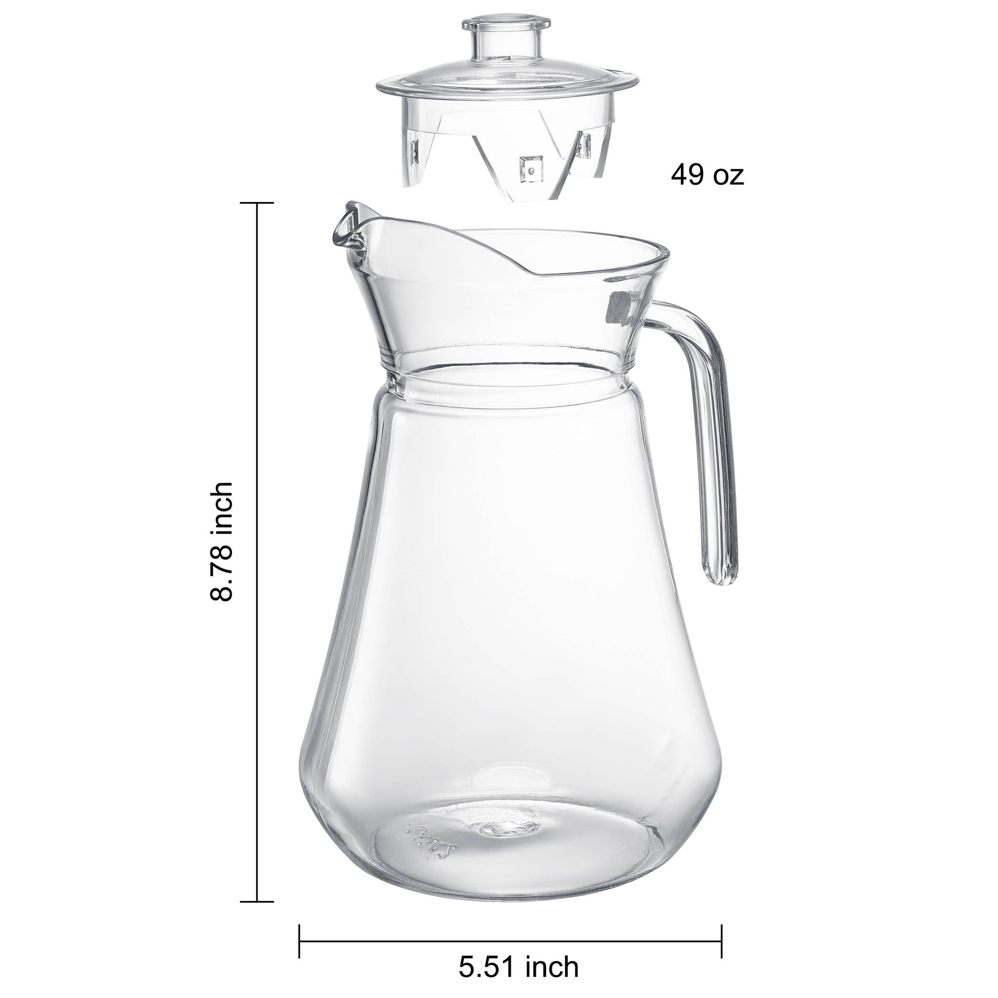 Serve refreshments with confidence using this 49-ounce acrylic pitcher—a shatterproof alternative to fragile glass. Whether you're mixing lemonade for a backyard gathering, chilling sangria for dinner guests, or pouring beer at a tailgate, its generous capacity handles any occasion. Built tough from durable acrylic, it resists cracks and breaks from accidental drops, making it equally at home at outdoor events, camping trips, or family picnics. The included lid keeps beverages fresh and protected. Choose a pitcher that's as practical as it is dependable—perfect for anyone who values both style and substance in their entertaining essentials.