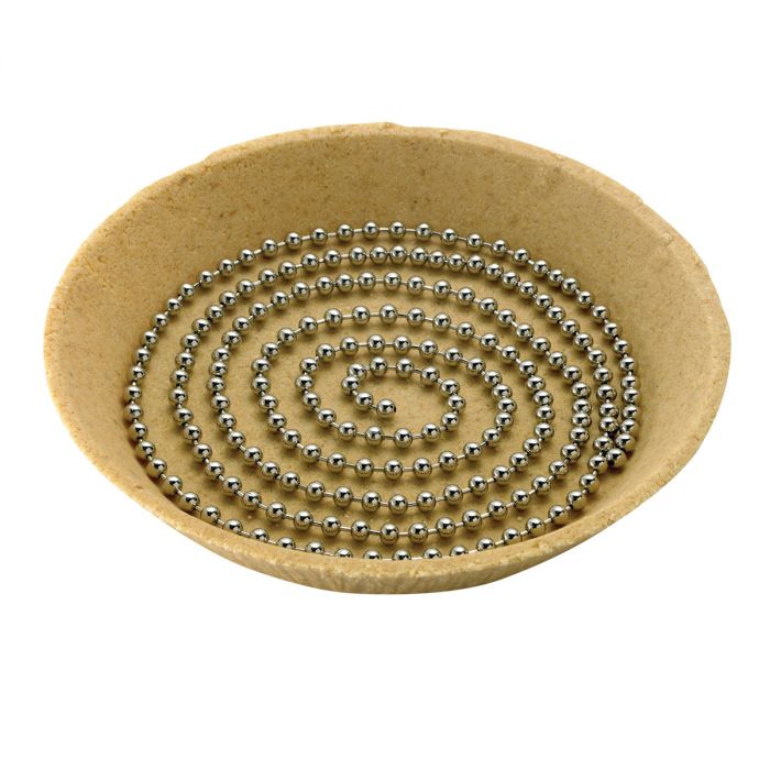 Simply line your unbaked crust with parchment, lay the chain in a spiral from the center out, and bake. Heat resistant up to 475°F and dishwasher safe, it also comes with a convenient storage container.