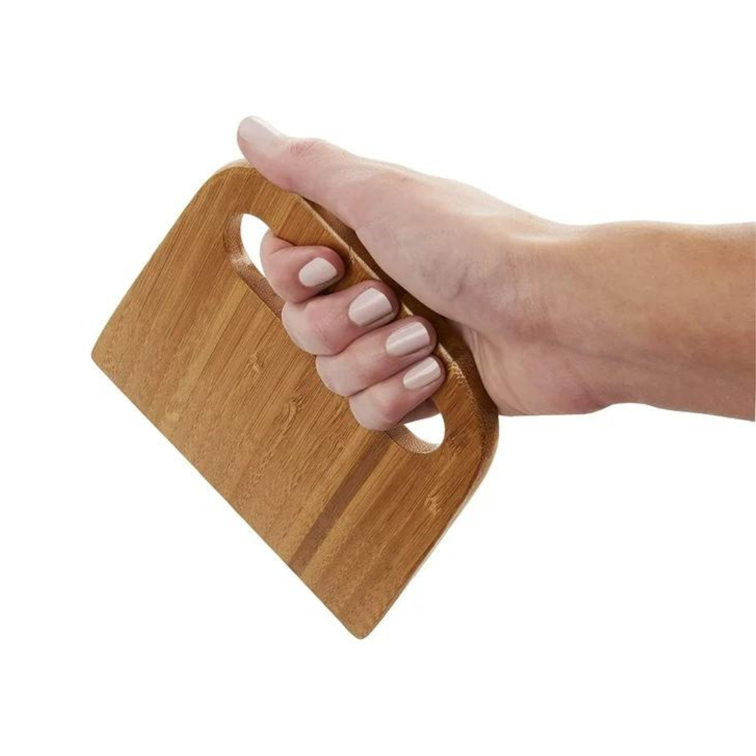 Utilize a bamboo bench and dough scraper for portioning dough, scraping down work surfaces, lifting dough and baked goods, and chopping firm foods! Made from 100% sustainable and natural bamboo. The front beveled edge quickly portions dough into the right-sized pieces for easy handling. Great for lifting cookies from a baking sheet, cutting brownies into even-sized pieces, chopping vegetables, and more!