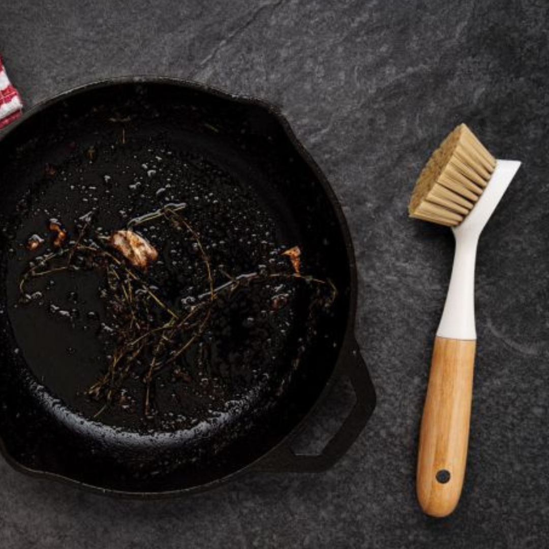 Bamboo Dish Scrubber Brush cleans dishes, pots and pans, and so much more. It scrubs everything clean but won't scratch non-stick surfaces. Great for washing dishes, pots and pans, baking dishes, and even doing household chores. The longer handle adds leverage for vigorous scrubbing tasks on tougher grime. HIC's Dish Scrubber features deep bristles to quickly remove stuck-on food bits and grime without scratching surfaces. Economical, reusable, and wear-and-tear resistant for more cleanings with less waste. Hangs for easy storage. Made from varnished bamboo, propylene, and polyethylene, it's safe for use on nonstick cookware. Varnish protects the bamboo handle against mold. Safe for use on nonstick cookware. Rinse clean between uses and air dry.