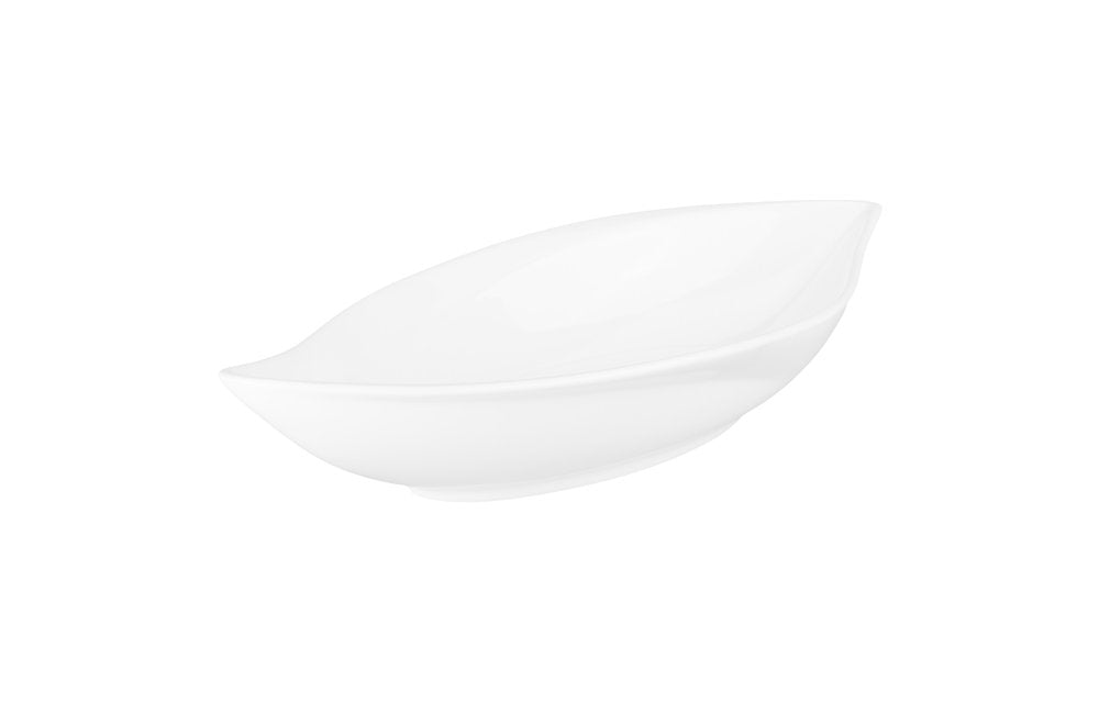 Serve your favorite meals with this Banana Leaf Bowl from BIA Cordon Bleu. The classic white finish maintains a simple elegance. Made from porcelain, this resists chipping, cracking and staining.