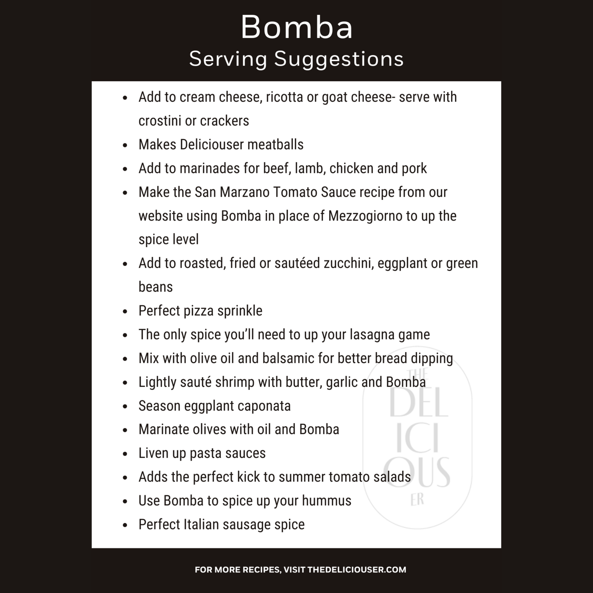 A spicy blend of crushed Calabrian chilies mixed with sweet, dried tomatoes, basil, toasted fennel seeds, and the slightest hint of red wine vinegar. Great with chicken, seafood, pasta, and meatballs.
