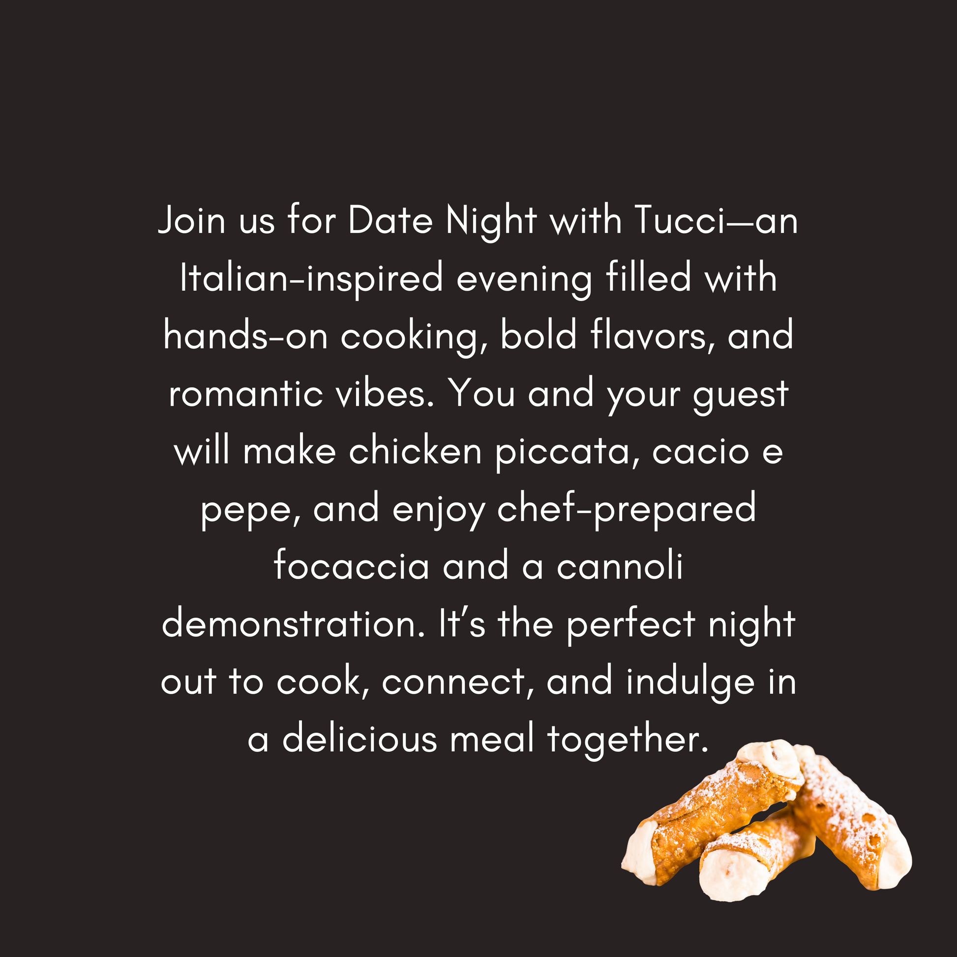 Whether you're celebrating a special occasion or just looking for a fun night out, Date Night with Tucci is the perfect recipe for laughter, connection, and unforgettable food. Come hungry, leave inspired—and don’t wait too long. These seats fill up fast!