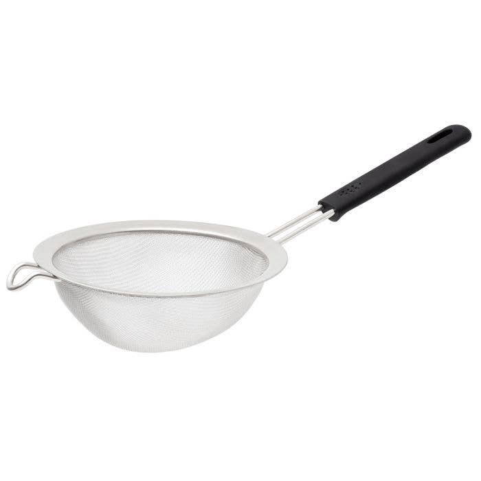 HIC Kitchen’s Fine Mesh Strainer with Silicone Handle is the perfect tool for sifting, draining, and straining with comfort and control. The soft, non-slip silicone handle ensures a secure grip, even when wet, while the helper handle rests securely on bowls, pots, or pans to keep hands free for pouring and measuring. The fine mesh filters out seeds, skins, and pulp for smooth sauces, soups, and purees with perfectly creamy textures—no lumps, no fuss. Ideal for rinsing rice and grains, catching citrus seeds, or straining herb and spice infusions, this kitchen essential blends function and ease beautifully.