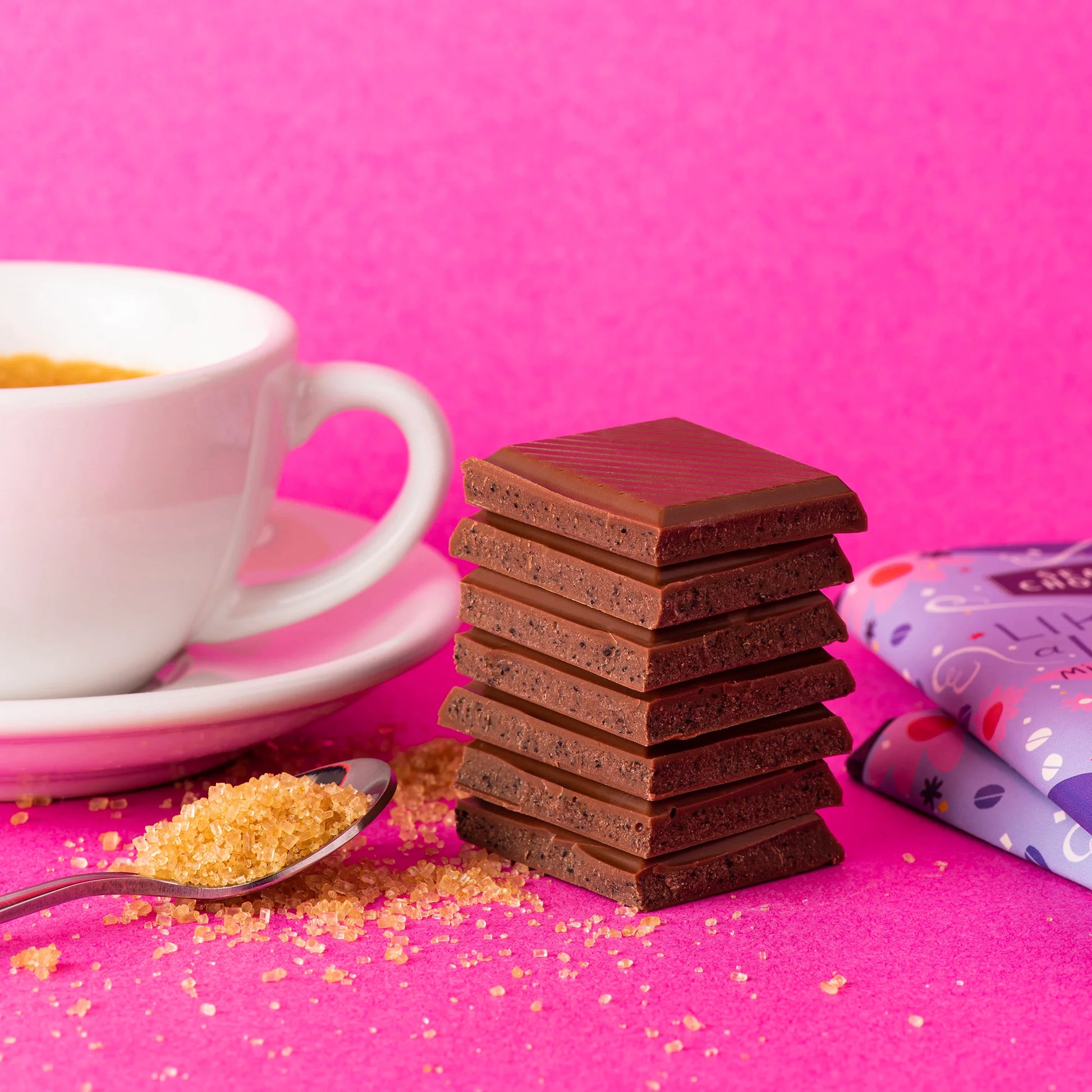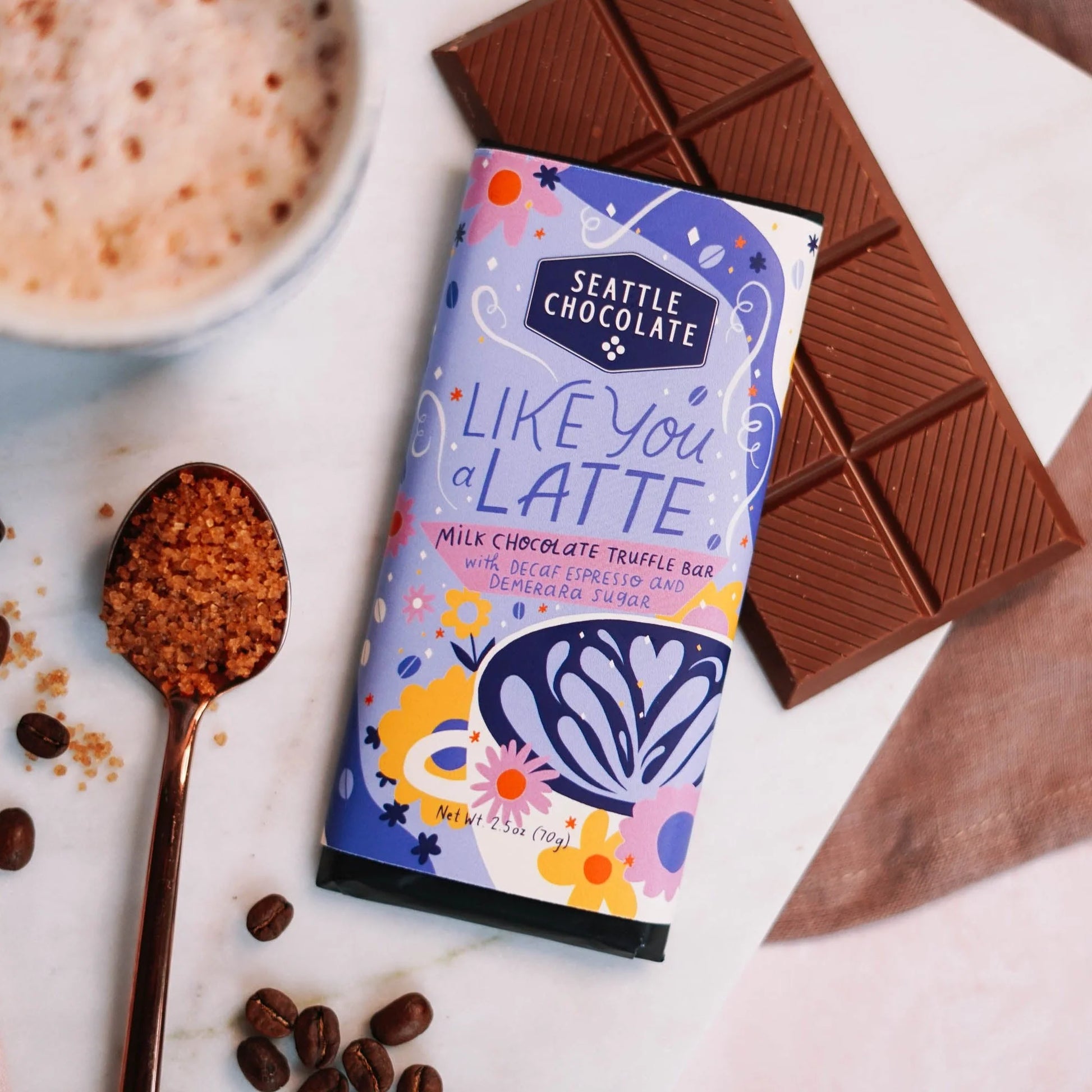 If your favorite person takes their coffee with a side of chocolate, they’ll fall hard for this creamy milk chocolate truffle bar infused with decaf espresso and crunchy, sparkling demerara sugar. Demerara is an unrefined cane sugar with a rich, molasses aroma similar to brown sugar - but with a larger grain, golden hue, and tasting notes of warm toffee and sugar cane. This tasty spin on a classic cafe beverage is only available for the Valentine season - get it while you can!