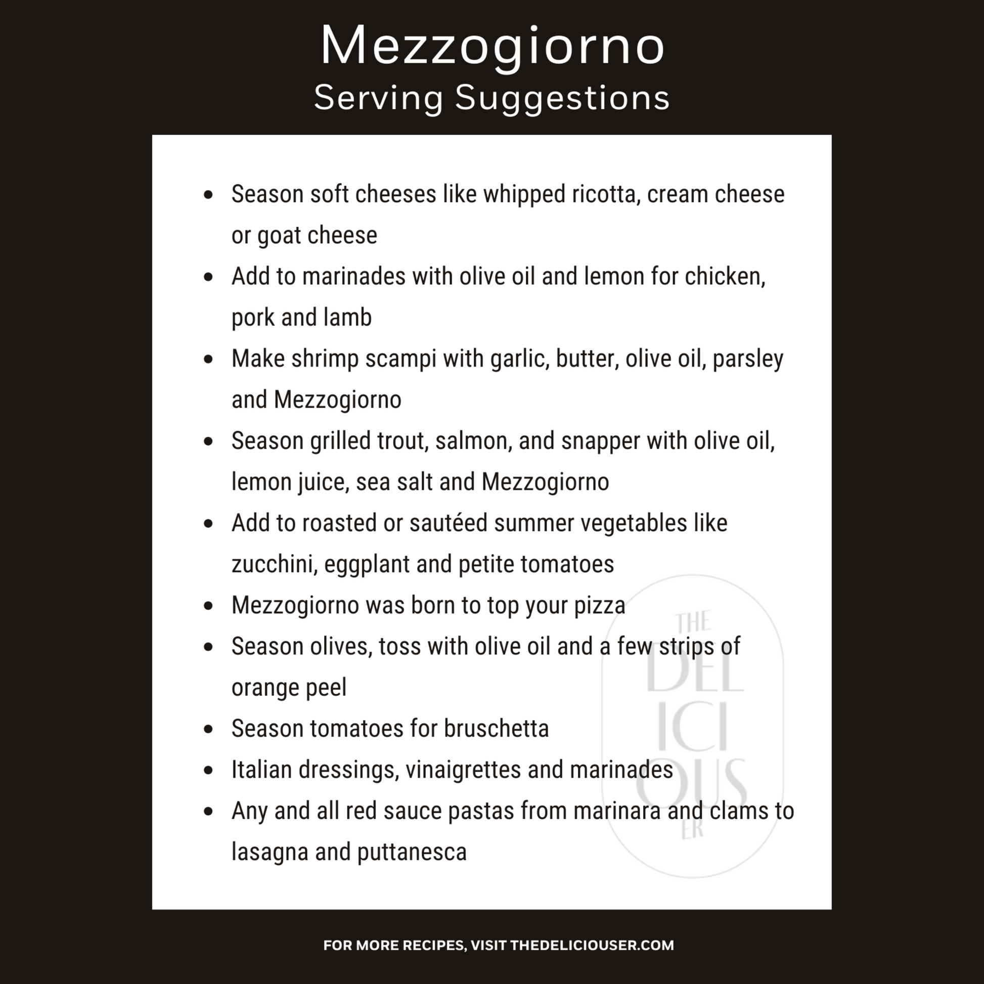 Deliciouser with: tomatoes, olive oil, vinaigrette, pizza, pasta, fresh mozzarella, tomato sauce, balsamic vinegar, meatballs, grilled chicken