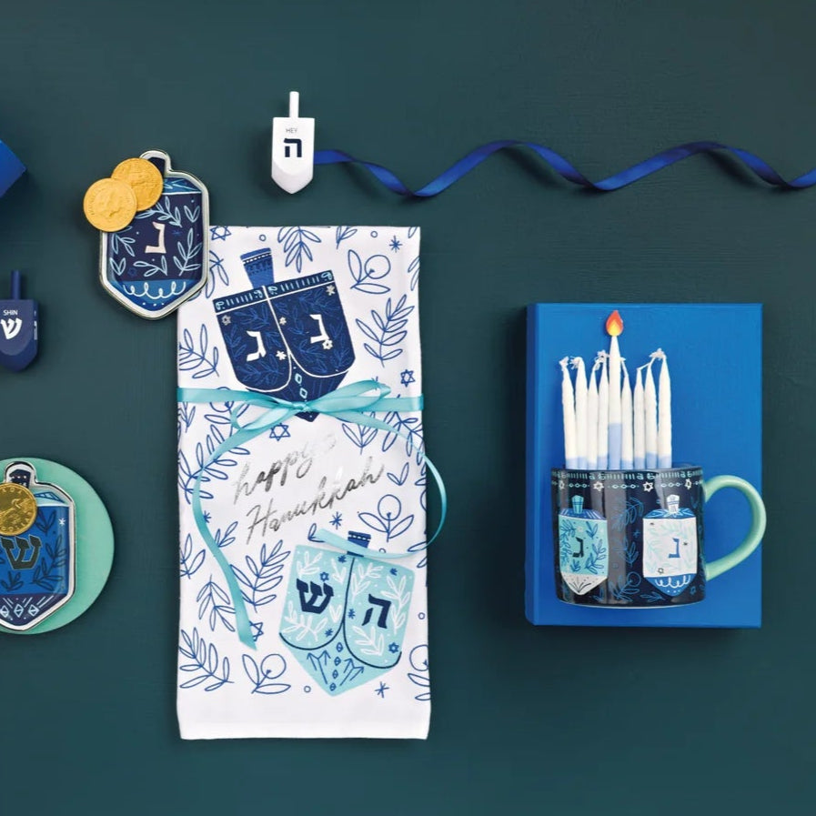 This sweet-as-can-be Dreidels mug arrives in a beautifully giftable box that doubles as a keepsake for storing small treasures. In shades of blue with glints of metallic foil, spinning dreidels take center stage—bringing a playful sparkle to your eight nights of Hanukkah celebration. Crafted from durable stoneware, it’s the perfect mug for cozy evenings filled with light, laughter, and tradition.