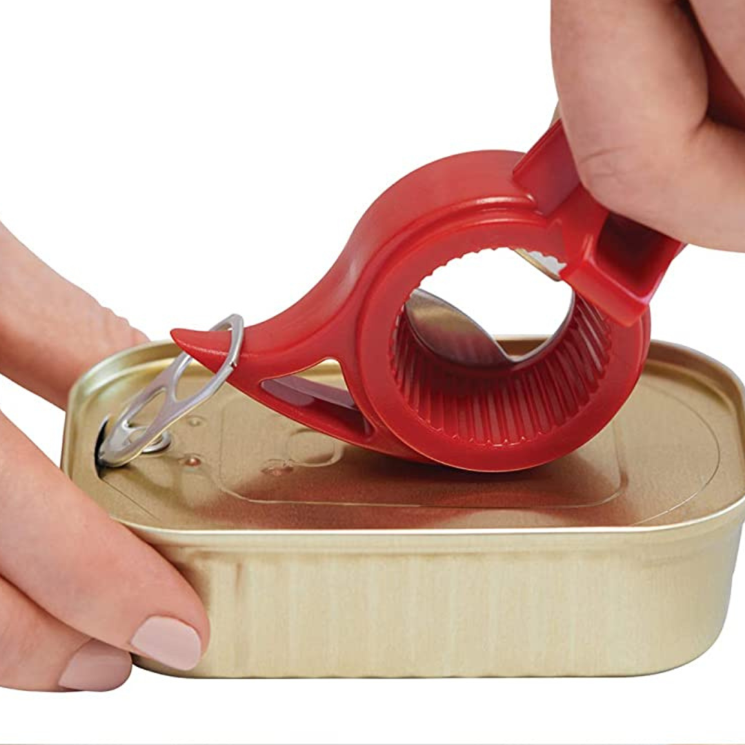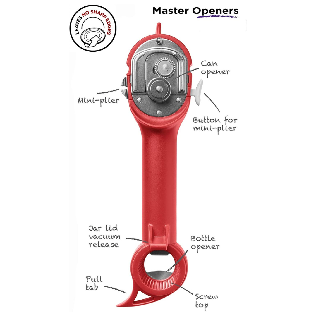 Meet the LidLifter, the can opener that does it all—no sharp edges, no mess! This best-selling tool is designed to effortlessly handle cans, bottles, pull-tops, soda cans, and screw bottle tops, making it the ultimate kitchen multitasker. Featuring a side-cutting mechanism, it ensures a smooth edge every time and keeps the lid securely in place, so you never have to worry about it touching your food. The Swiss-designed opener includes five tools in one—can opener, bottle opener, pull ring opener, screw top opener, and soda tab opener—with a simple one-turn operation that makes opening anything a breeze.
