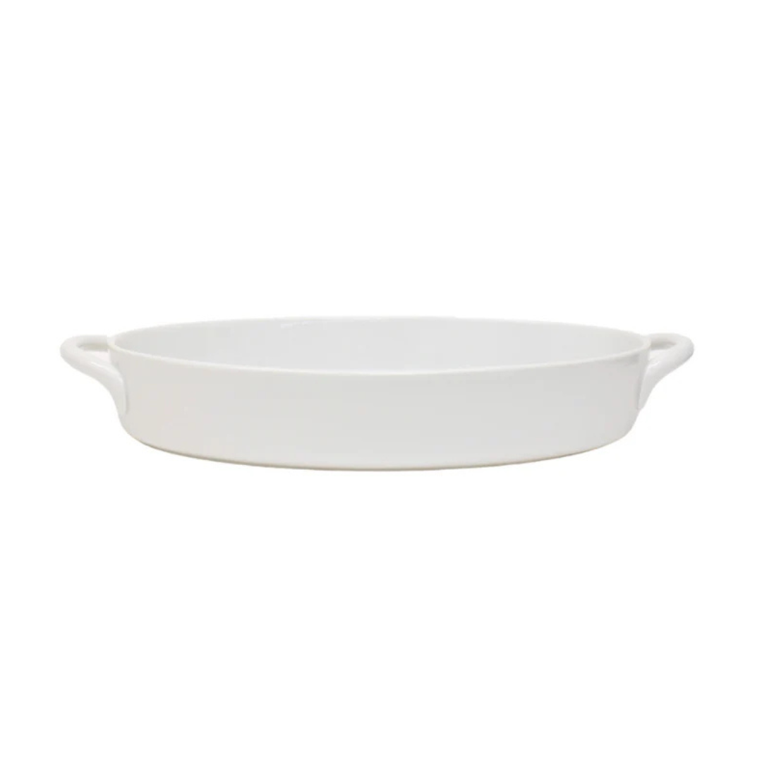 Make cheesy scalloped potatoes or serve a buttery shrimp scampi with the Taos Oval Baker! This 3.25-quart dish is made of durable porcelain that’s resistant to chipping, cracking, and staining, ensuring your bakeware looks beautiful even after years of use. Plus, it's microwave, dishwasher, and oven-safe up to 500°F and features wide handles for easy transport from the kitchen to the table. For a stylishly simple dish that’s perfect for baking and serving entrees, appetizers, dips, desserts, and more, try the Taos Oval Baker.