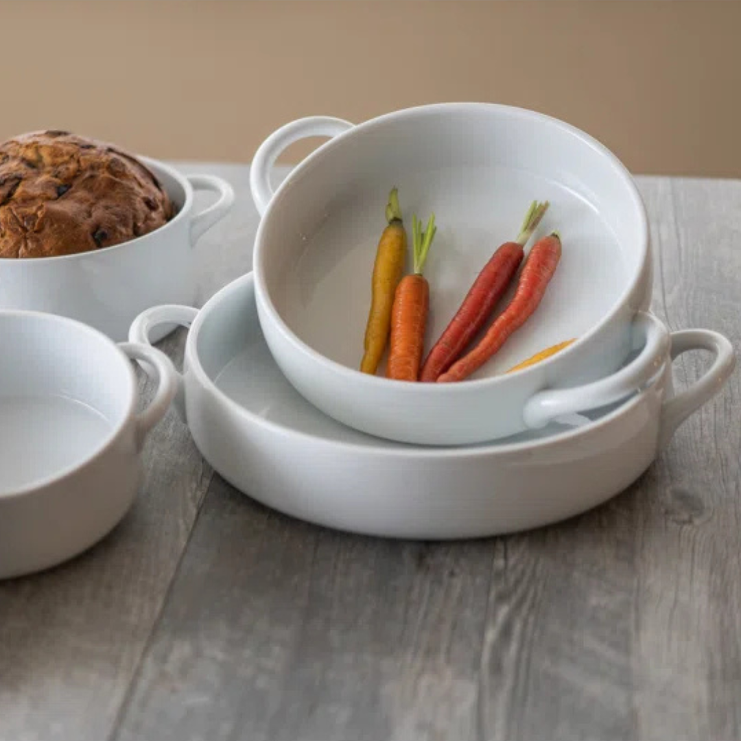 The Taos Round Baker combines elegance and functionality, making it a must-have for your kitchen. Crafted from high-quality, durable porcelain, this 3.25-quart baker features a smooth glazed finish that resists cracking and staining, ensuring lasting beauty. Its round design with sturdy handles makes it easy to transition from oven to table, adding a touch of sophistication to your presentation. This versatile dish is oven, microwave, and dishwasher safe, offering both practicality and timeless charm for your cooking and serving needs.