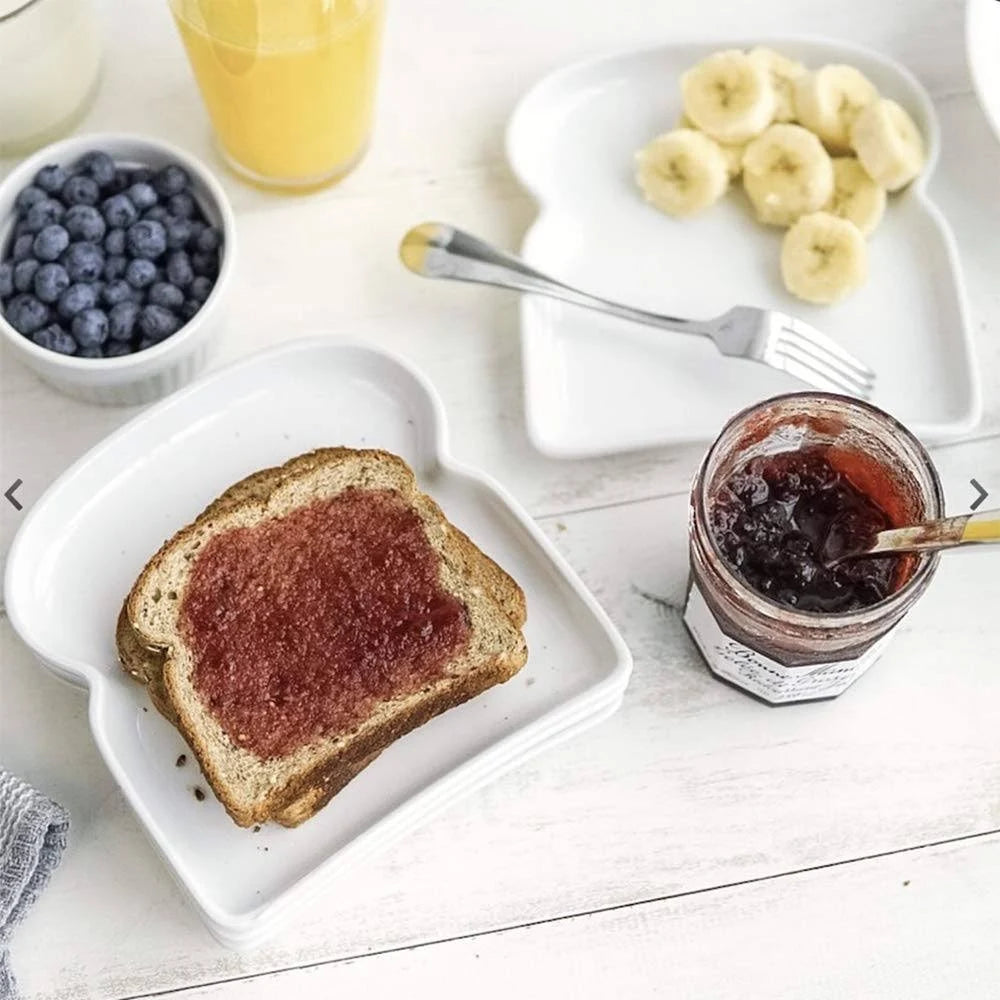 Bring a fun and whimsical touch to your dining table with this toast-shaped plate. Made from high-quality white porcelain, this charming plate is perfect for serving small bites, snacks, or side dishes. Measuring 6.25" x 6.75" x 0.75", it’s both stylish and practical, easily transitioning from the dishwasher to the microwave or oven. A delightful and functional addition to any table setting.