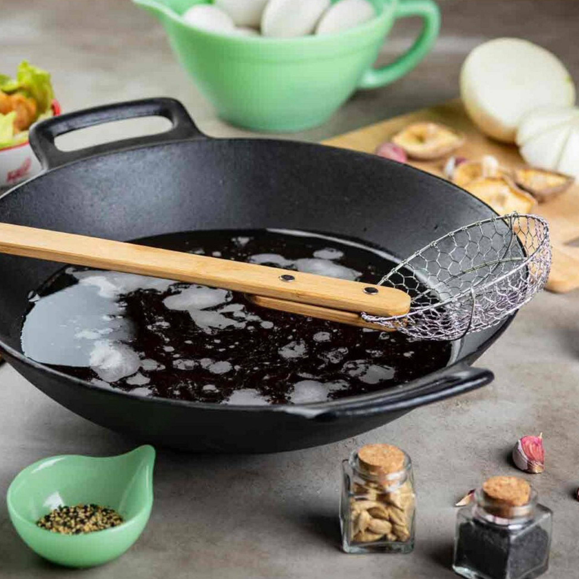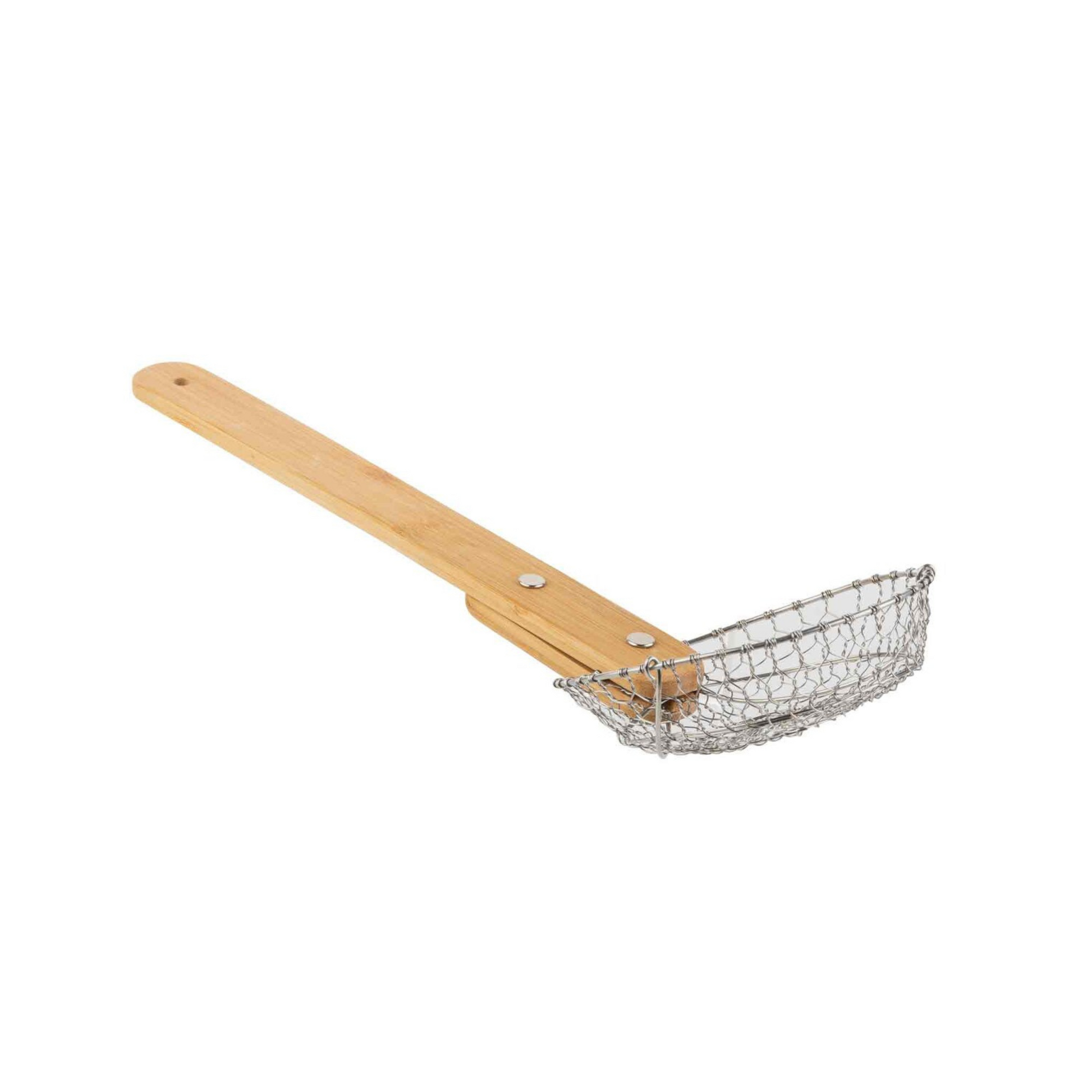 Bring the flavors of your favorite international dishes to life with this beautifully crafted Wok Strainer, also known as a traditional "Bird’s Nest" strainer. An essential tool in Asian cooking, it’s perfect for shallow or deep frying, poaching, and boiling. The wide, shallow wire basket is designed to lift foods out of hot oil or water quickly and efficiently, while the long bamboo handle keeps your hands safely away from heat. Lightweight, durable, and inspired by nature, it’s a must-have for any home chef exploring global flavors.